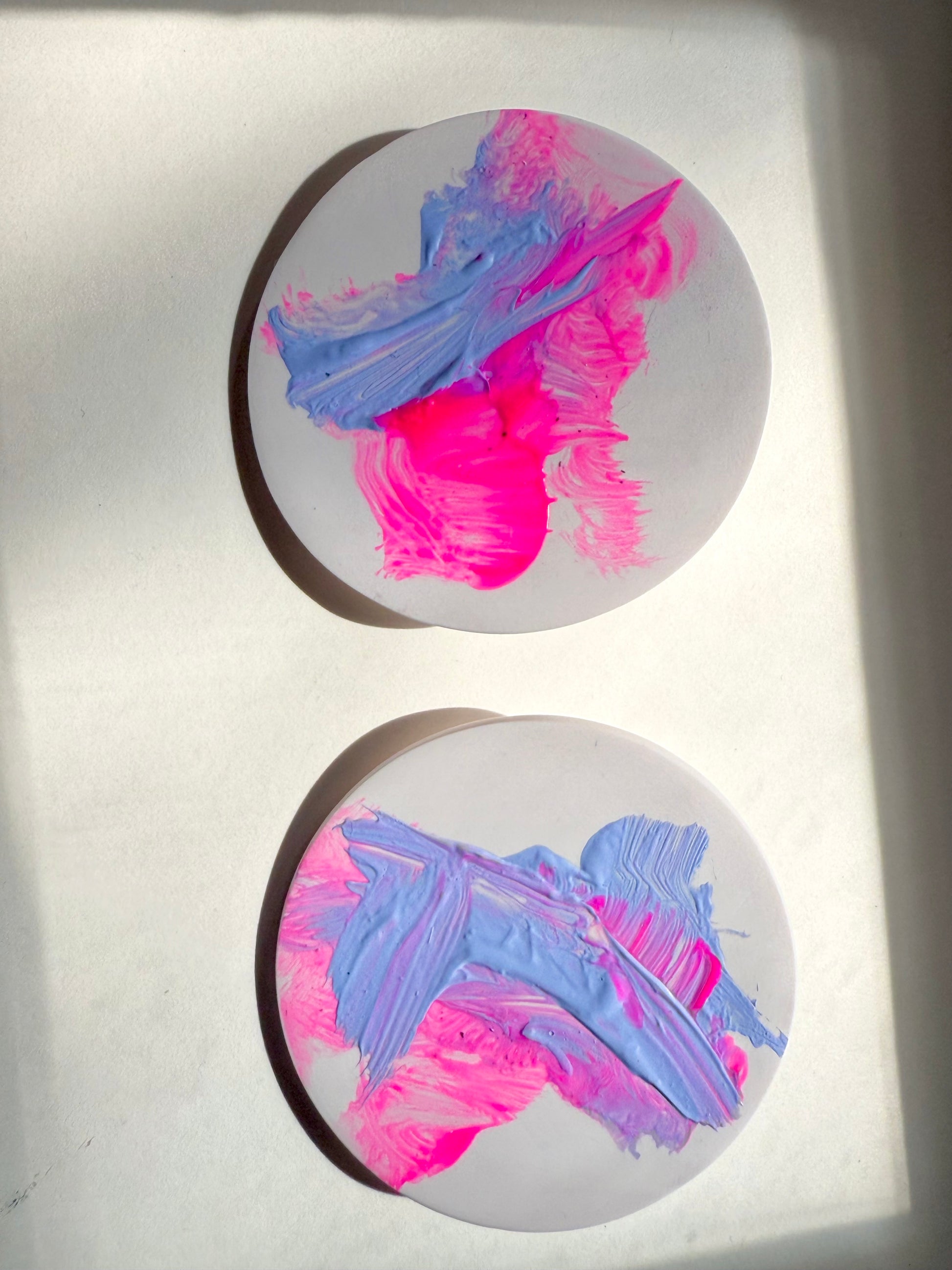 Art that doesn’t just hang on walls - it moves with you. From canvas to clay, abstract art is distilled into miniature form. Each stud is sculpted in clay, painted with instinct, and finished with a sealed varnish. Gestural strokes are frozen in time - hand-painted, one-of-a-kind, and designed to be worn as daily statements. Abstract expressionism, reimagined in jewellery form.