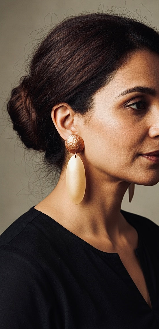 Please note: Earring proportions can appear different in photographs depending on face shape and jawline. For accuracy, please rely on the dimensions mentioned above, as these reflect the true size of the piece. Images are for reference.