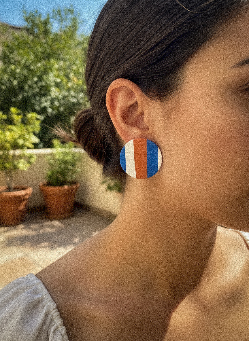 Colour: White Base with Terracotta and Cobalt Blue Stripes